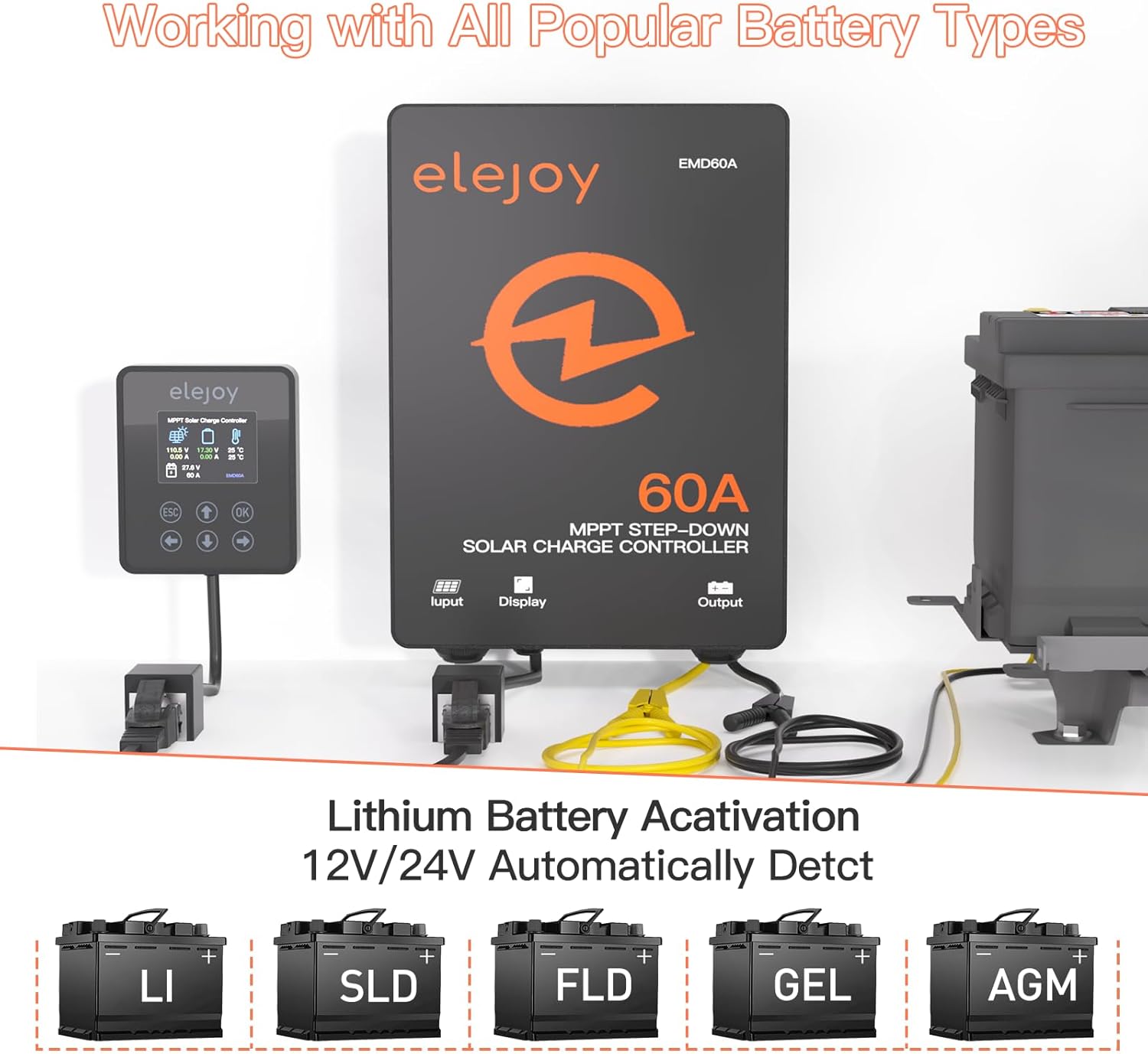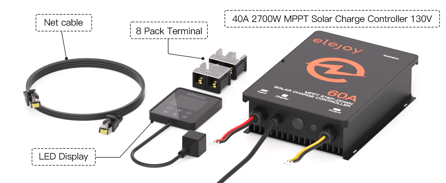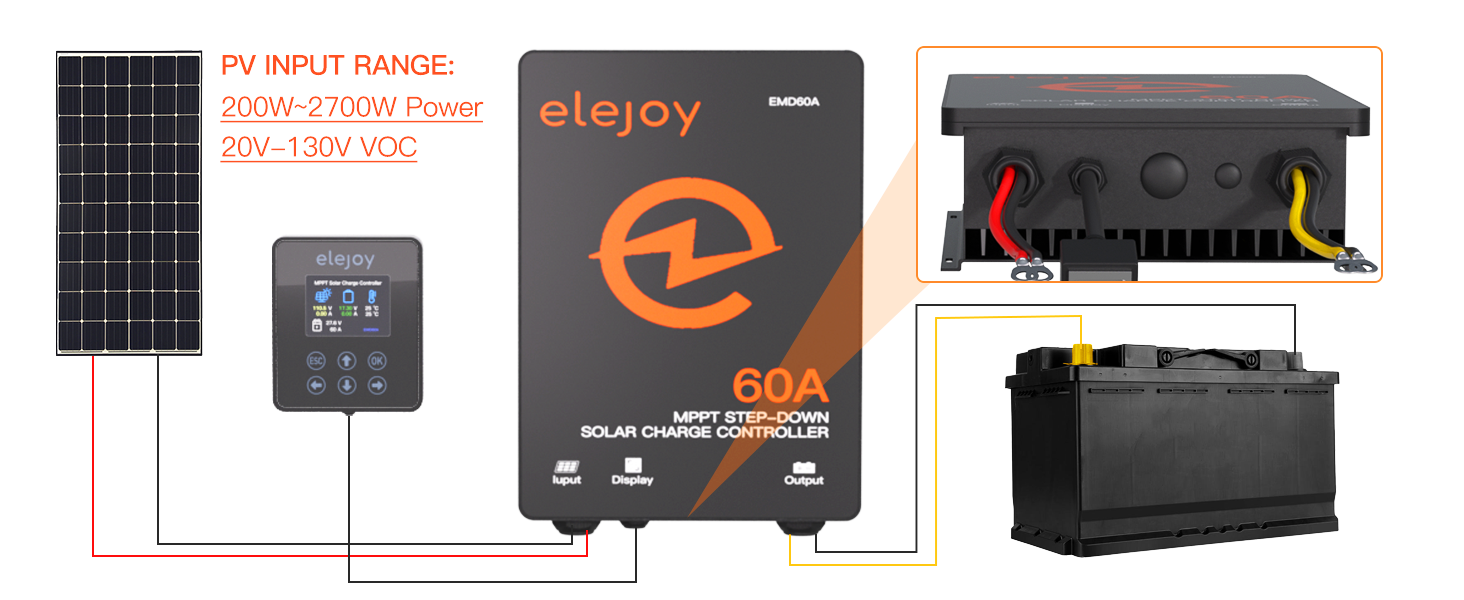 - 【Intelligent Protection Mechanism】ELEJOY MPPT Solar Charge Controller has complete undervoltage/overtemperature/short-circuit/output overcurrent/overload/anti-backflow protection mechanisms.